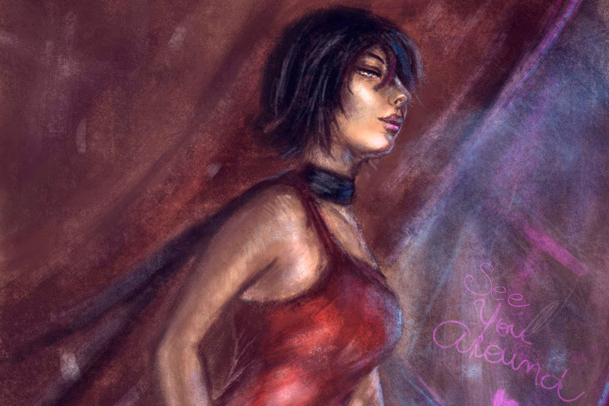 Como estou jogando Resident Evil 2 Remake — e que jogaço, aliás! Nostalgia pura! Se você jogou o original, recomendo demais que jogue esse remake! Está maravilhoso — resolvi fazer um novo fan art da Ada Wong. Tinha feito um em 2013, ano que comecei a desenhar sem parar, então foi algo legal de comparar com esse novo. Além dele, fiz um rabisco solto no Procreate.