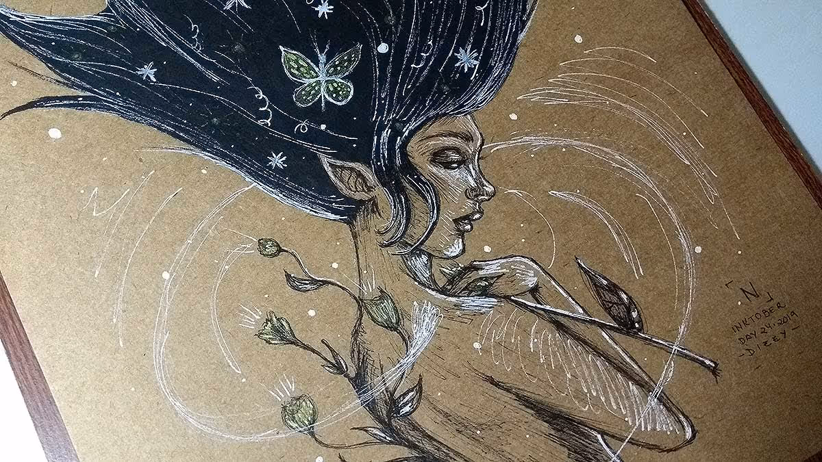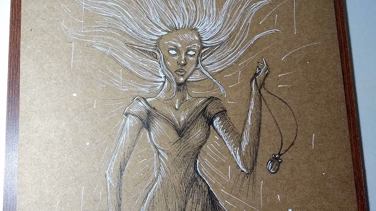 Uma elfa fantasma em busca de vingança, haha. Feito em canetas nanquim pretas e branca.