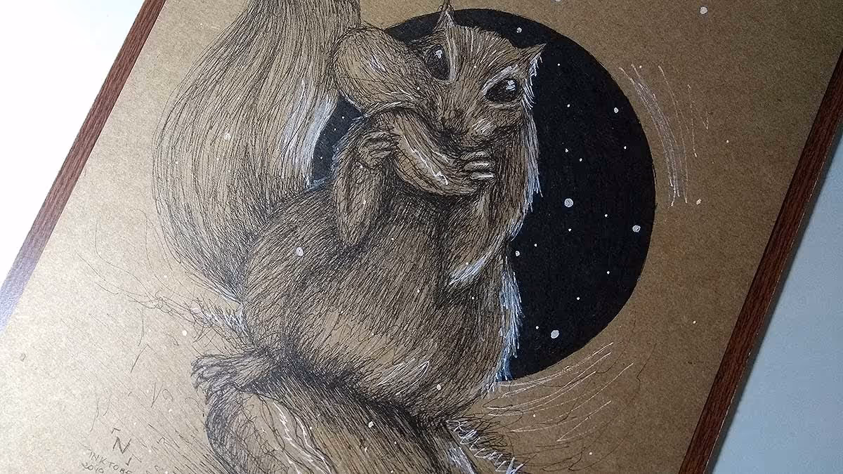 Fazia algum tempo que eu não desenhava esquilos — e amo desenhar esquilos, haha — então aproveitei esse dia para fazer um comendo uma noz. Eles ficam tão fofinhos quando enfiam a noz inteira na boca, não é mesmo? Hahahaha.