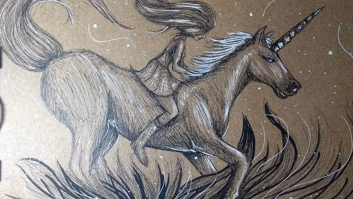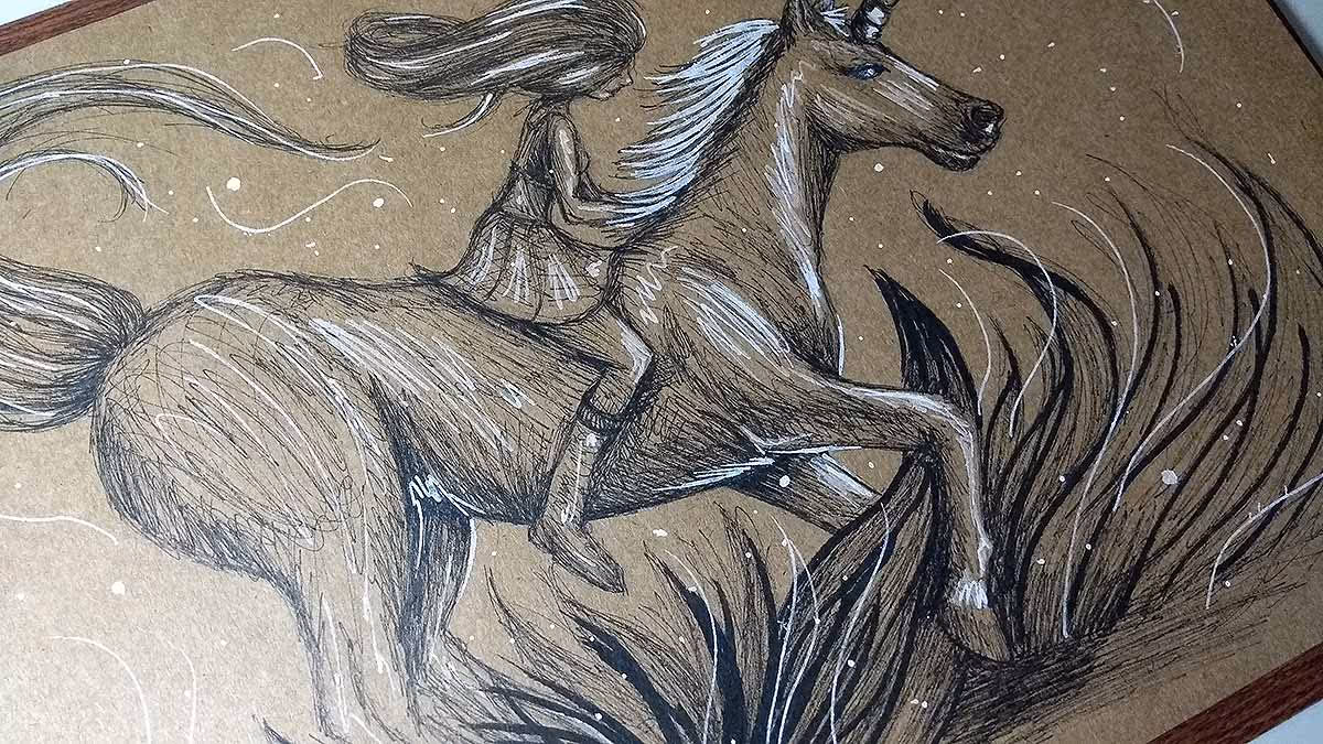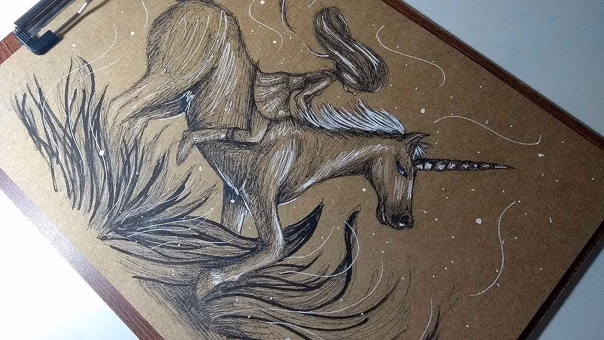 A ideia aqui é uma garotinha passeando de carona em seu amigo unicórnio :)