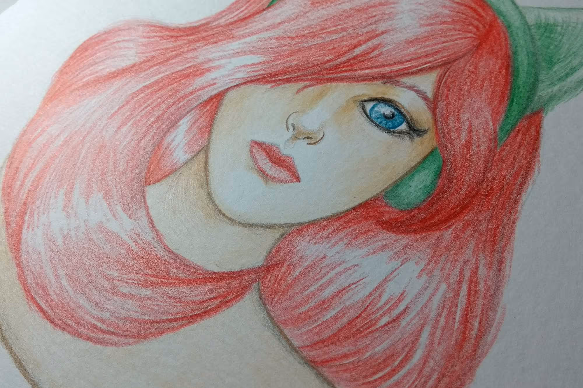 Sketch inicial de uma menina com fones de ouvido de gato, haha. Esse resolvi pintar com lápis de cor depois, fotos do processo logo em seguida.