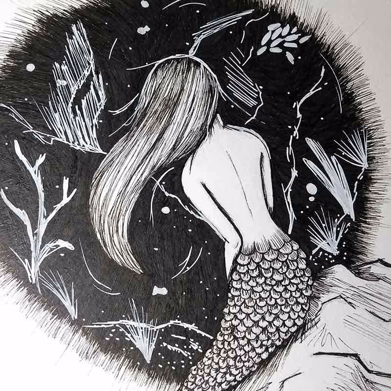 Desenho feito para o Inktober 2017 dia 4: Underwater em canetas nanquim Pigma Micron e UniPosca sobre papel Canson A4 de 300g/m².