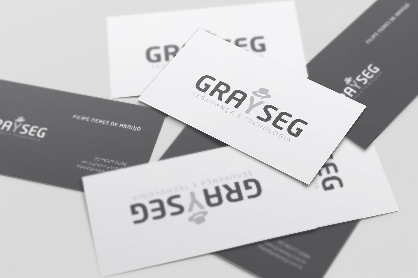 Como é uma empresa de segurança da informação, o cliente queria que o logo incorporasse o conceito de Gray Hat ("Chapéu cinza" = Hacker = significa um hacker que não é bom nem mau, porém não utiliza as informações de uma companhia para ganho pessoal). Por conta disso, ele queria um chapéu cinza no logo. Então, seguindo esse conceito, tive a ideia de incorporar o hacker com chapéu cinza dentro do logo de forma minimalista. Como o Y lembrou-me uma maneira de representar o corpo de uma pessoa, criei o chapéu e os olhos no topo do Y para criar a percepção de que existe um hacker dentro do logo se escondendo.